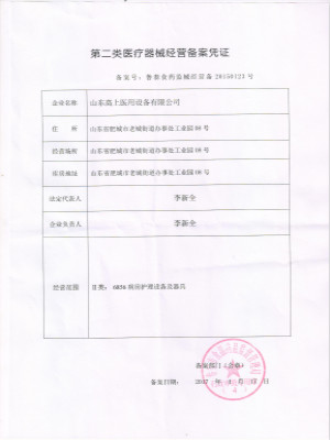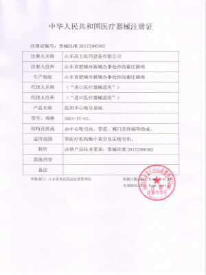 您現在位置:山東高上醫用設備有限公司 >> 資質榮耀